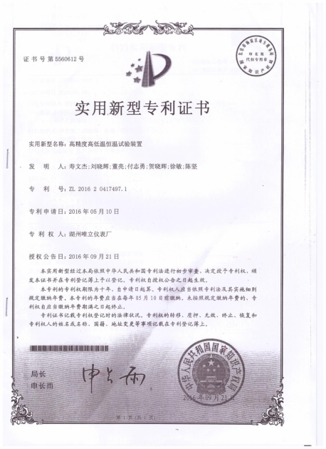 湖州唯立儀表科技有限公司成立于1996年(前身為湖州信立儀表廠,湖州唯立儀表廠),是國內溫、濕度檢定設備領域的專業生產制造廠家, 具有較強的開發研制能力,是技術、生產經營相結合的技術型企業,JJG128-2003二等標準水銀溫度計檢定規程及1564-2016溫濕度標準箱校準規范的起草單位, 中國溫度計量專業委員會成員。擁有發明專利六項,實用新型專利十七項。